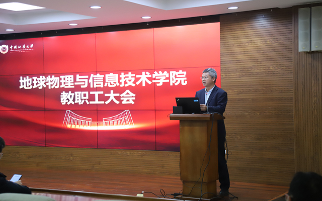 2025年10月16日下午,地球物理与信息技术学院在逸夫楼901会议室召开全院教职工大会,顺利完成新一届分工会委员和二级教代会代表选举工作。会议由学院教执委主任、院长邹长春主持。