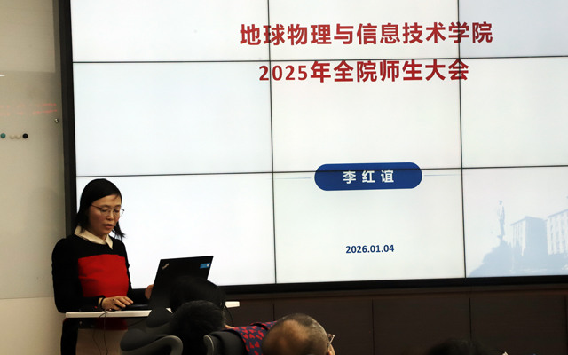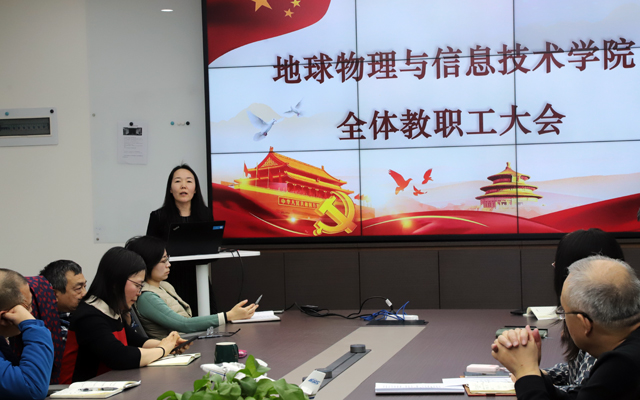 1月4日下午,地球物理与信息技术学院在教五楼227召开全体教职工大会,会议由学院党委书记吴海英主持。