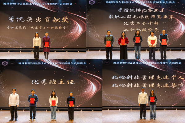 时序更迭,新元肇启。2026年1月4日,地球物理与信息技术学院2025年度“地承初心,信赴山海”师生表彰晚会在璀璨灯火中盛大启幕。师生齐聚一堂,共同盘点2025年的奋斗硕果,见证先进榜样的荣耀时刻,擘画2026年的崭新征程。