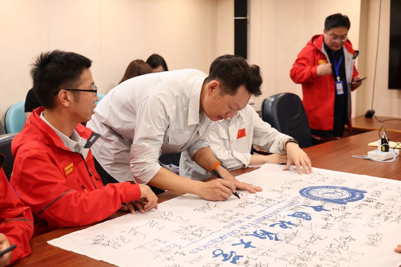 在“雪龙”号上,林善园与各学院领导一同慰问考察队员,并同队员们亲切座谈。林善园代表学校向全体队员表示热烈祝贺,对他们克服极地严酷环境、圆满完成各项考察任务致以崇高敬意。他表示,在此次考察过程中,多项自主研发的装备与技术获得实际应用,充分体现了学校在极地研究等前沿领域的扎实积累和创新能力。面向“四深一极”国家重大战略领域,学校将进一步优化科研布局,加强与校外单位的合作对接,并依托“一校三区”的办学格局与发展规划,在平台建设、空间保障、物力支持等方面加大投入,为师生投身国家极地事业、开展创新性科研攻关创造更优越的条件、提供更坚实的支撑。
